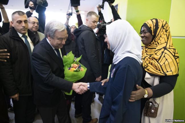 “لستم وحدكم. العالم معكم. الأمم المتحدة معكم، وأنا معكم”.