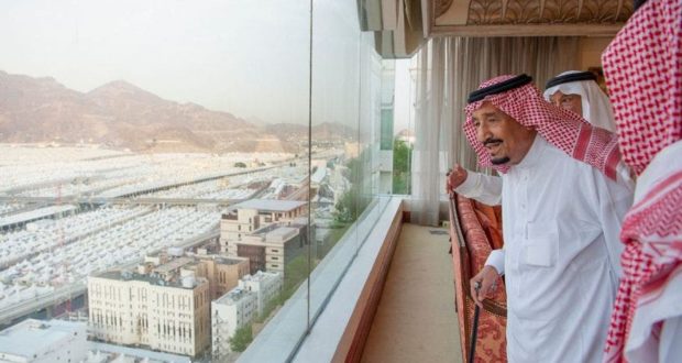 وكان خادم الحرمين الشريفين الملك سلمان وصل، السبت، التاسع من شهر ذي الحجة، إلى منى ليشرف على راحة حجاج بيت الله الحرام وما يقدم لهم من خدمات وتسهيلات ليؤدوا مناسكهم بكل يسر وسهولة وأمان.